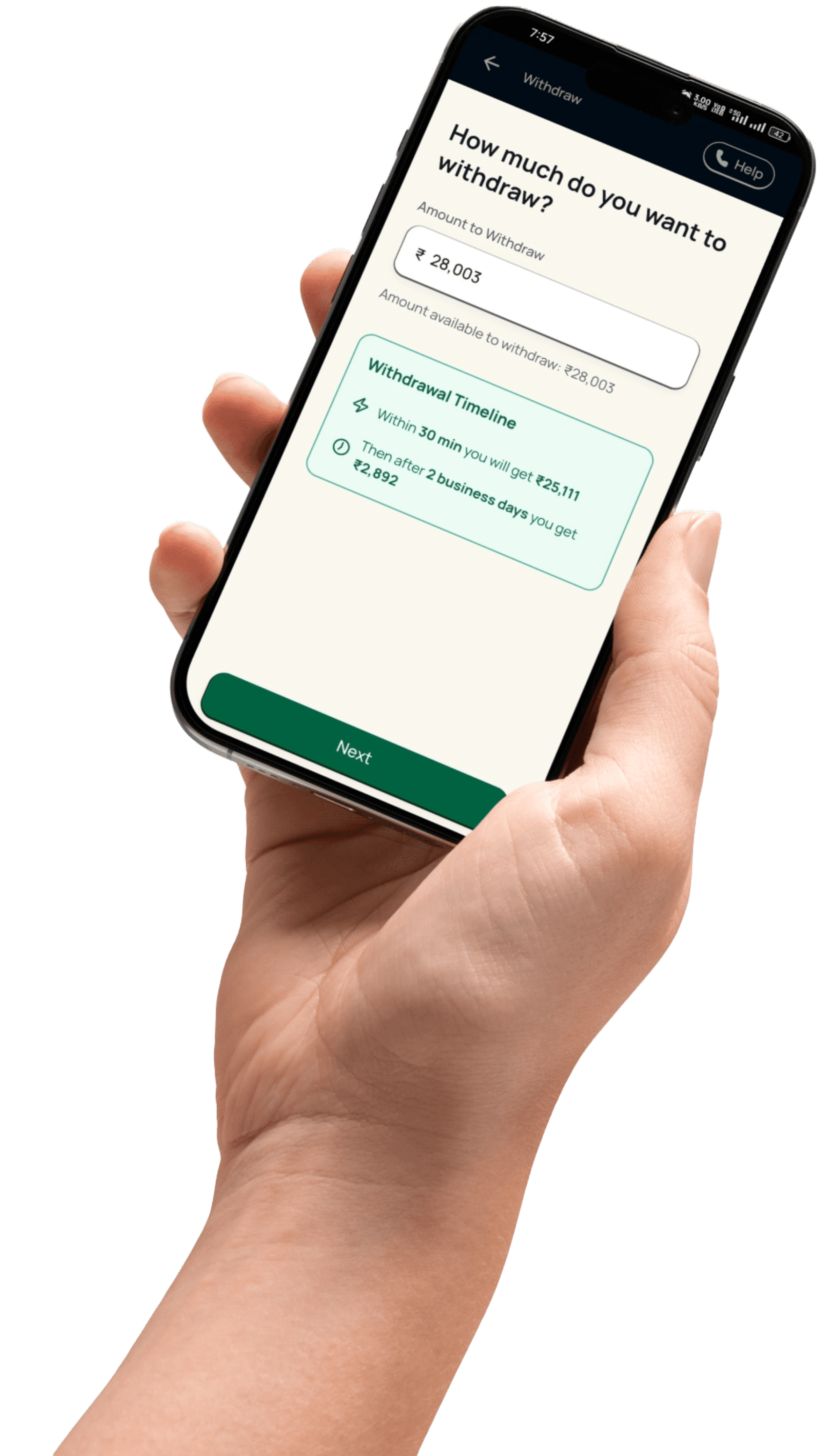 Yes. You can withdraw at any time, typically within minutes. Daily withdrawal limits apply, up to ₹50,000 per day or 90% of your balance, whichever is lower.